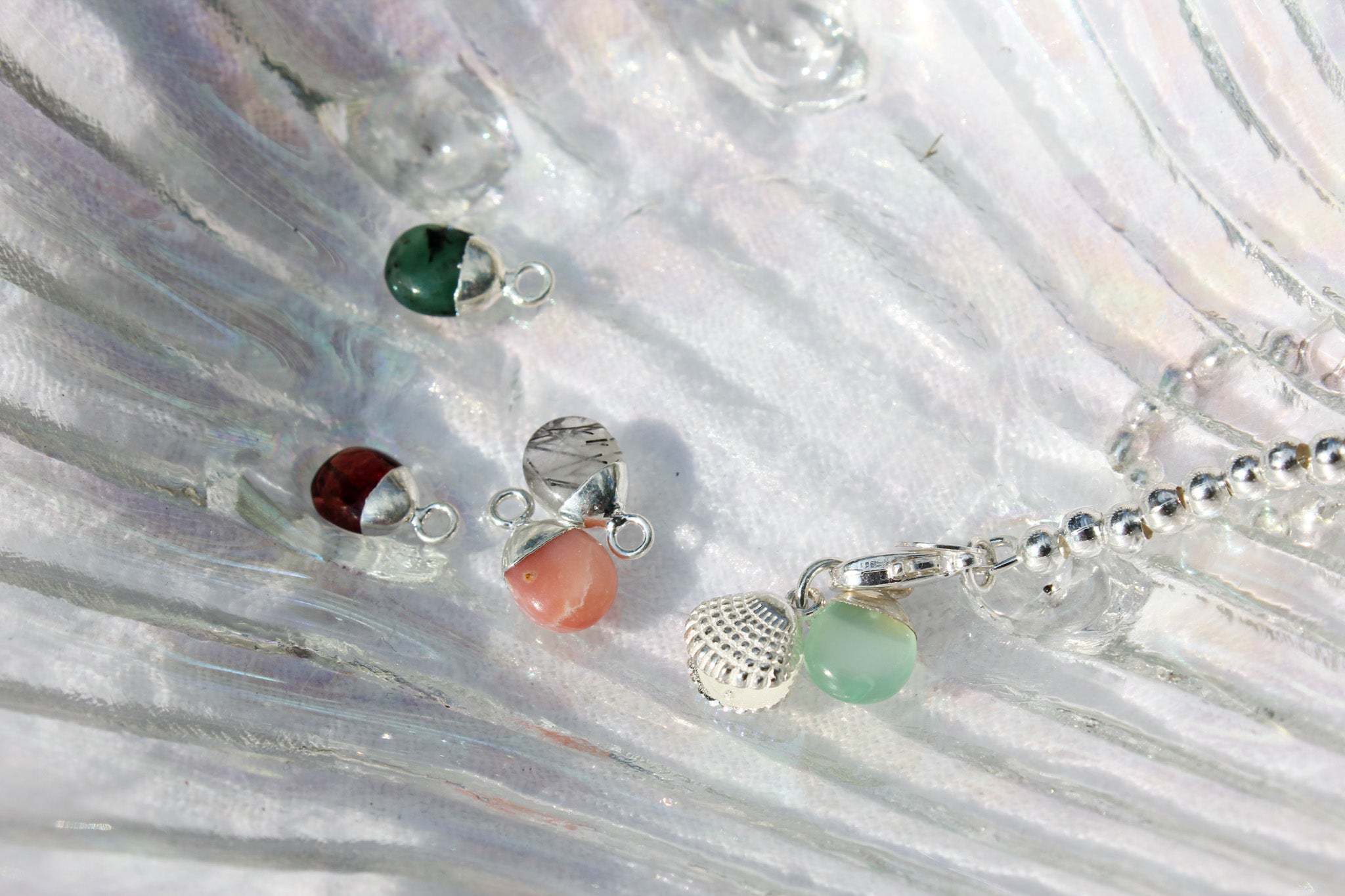 Next, you’ll choose a crystal to accompany your charm—each stone is carefully selected for its natural energy and healing properties. Whether you’re drawn to the calming power of rose quartz, the grounding energy of black onyx, or the clarity of clear crystal, your chosen combination will reflect and enhance your personal intention.