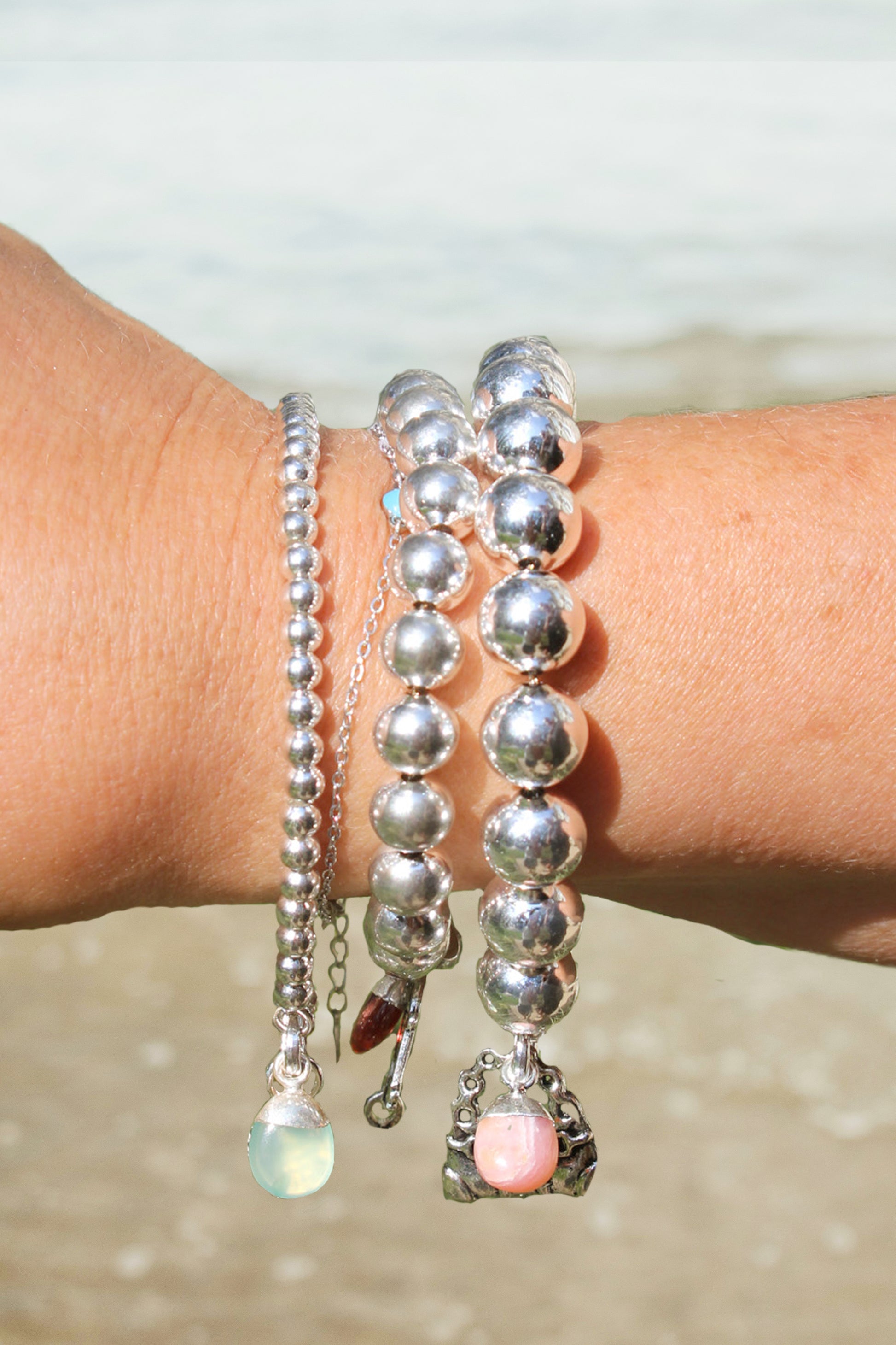 Every bracelet is handcrafted with 4 mm, 8mm, or 10 mm sterling silver beads, allowing you to choose the size and look that feels most aligned with your style and energy.